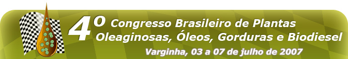A Comissão Organizadora tem a honra de convidá-lo a participar do 4º Congresso Brasileiro de Plantas Oleaginosas, Óleos, Gorduras e Biodiesel, a ser realizado em Varginha - Minas Gerais, no período de 03 a 07 de julho de 2007.